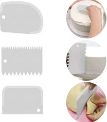 V paketu so tri dekorativne lopatice, vsaka z drugačnim vzorcem, ki pomagajo ustvariti različne teksture na vaših tortah.