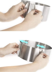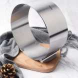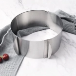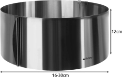 Univerzalen okrogel nastavljiv tortni obroč je idealen za peko biskvitov, sestavljanje in hlajenje tort ter sladic. Nima dna, zato testo vlijete na pekač, obložen s peki papirjem, in preprosto nastavite željeni premer. Notranje merilo 16–30 cm na 2 cm prihrani čas in zagotavlja natančnost.