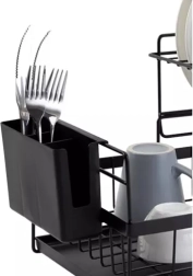 Del kompleta je odstranljiva košarica za pribor z dvema ločenima prekatoma za pregledno organizacijo ter preprosto čistljiv odcejalni pladenj, ki zadrži vodo in ohranja kuhinjski pult suh. Univerzalna črna izvedba in čiste linije v loft slogu se odlično podajo tako k modernim kot klasičnim kuhinjam.