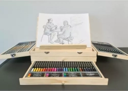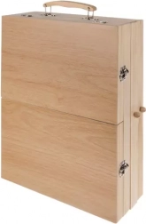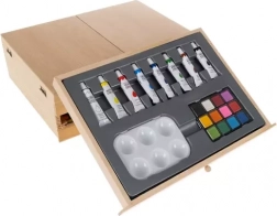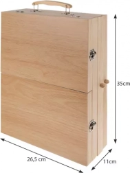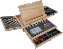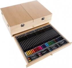 Ta vsestranski likovni komplet je idealen za začetnike in napredne. Leseni kovček iz smrekovega lesa se po odprtju spremeni v stabilno namizno stojalo (easel) in ustvari prenosno slikarsko postajo. Zaradi pametnih pregrad ima vsako orodje svoje mesto – od čopičev in svinčnikov do barv in palete.