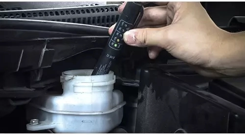 Ta digitalni tester zavorne tekočine meri vsebnost vode v DOT tekočinah in s pomočjo 5 LED diod jasno pokaže, ali je tekočina v redu ali je čas za zamenjavo. Dovolj je pritisniti gumb, potopiti elektrode v rezervoar in po nekaj sekundah odčitati rezultat.