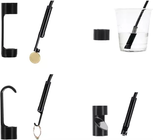 Šest LED z nastavitvijo svetlosti za oster prikaz v temi. Magnet, kaveljček in ogledalce razširijo možnosti pregleda ter rokovanja s predmeti.