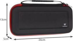 Premišljena notranja razporeditev vključuje mrežast žep za kable ali slušalke ter reže za 10 kartuš, da imate svojo igralno knjižnico vedno pri roki. Kompaktne mere in praktičen ročaj ga naredijo za idealno izbiro za potovanja in vsakodnevno uporabo.