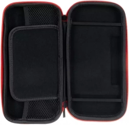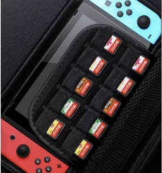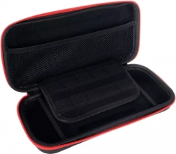 Mrežast žep za dodatke in predelki za 10 igralnih kartuš poskrbijo, da je vse pregledno in varno na svojem mestu.