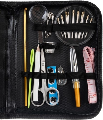 Komplet vsebuje orodja in pripomočke za hitro in enostavno popravljanje in prilagajanje oblačil, kar vam prihrani čas in stroške za profesionalne storitve.