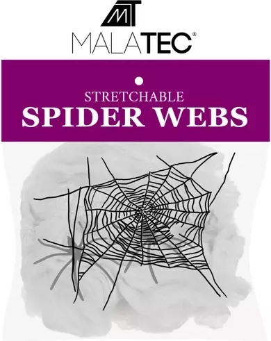 Umetna pajčevina MALATEC je nepogrešljiv okras za Halloween. Prožen material se zlahka razteza, trga in oblikuje, zato lahko v trenutku ustvarite avtentično videti pajčevino na pohištvu, ograjah, vratih ali v izložbi. Vlakna so gosta in oprijemljiva, zato po raztegu zagotovijo veliko pokritost do 2,5 m² in popolnoma strašljiv videz.