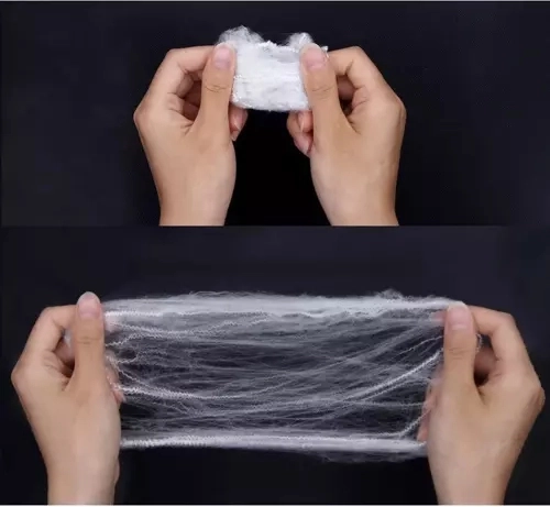 Vlakna se zlahka raztezajo in ohranjajo obliko, zato lahko ustvarite realistično pajčevino po velikih površinah. Idealno za pohištvo, okna, ograje ali izložbe.
