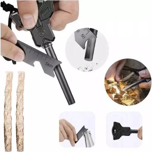 Ta univerzalni komplet za preživetje združuje ključno opremo za outdoor, pohodništvo in preživetje v enem odpornem, zapirljivem in vodotesnem etuiju. Zaradi premišljene izbire orodij boste obvladali kurjenje ognja, osnovno pripravo hrane, orientacijo na terenu in manjša popravila.