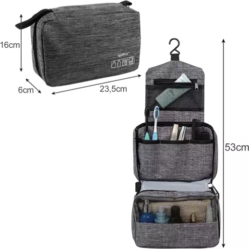 Tri prostorni žepi v notranjosti zagotavljajo, da bodo vsi vaši toaletni pripomočki pregledno organizirani in lahko dostopni.