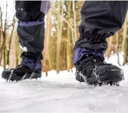 PROTI ZDRSU + TRAKOVI– elastični nastavki za čevlje, opremljeni z jeklenimi čepi. Idealne so za pohodnike, hojo v gozdovih in gorah. Z namestitvijo derezsi pomagamo med hojo v zahtevnih vremenskih razmerahkot sta sneg in led. Dodatnitrakovi na ježka preprečujejo zdrs derez s čevljev.