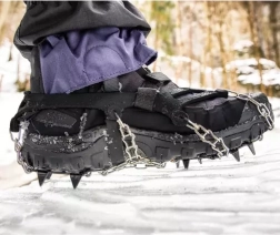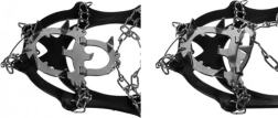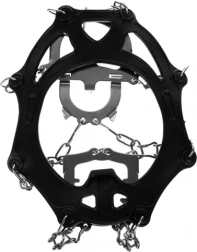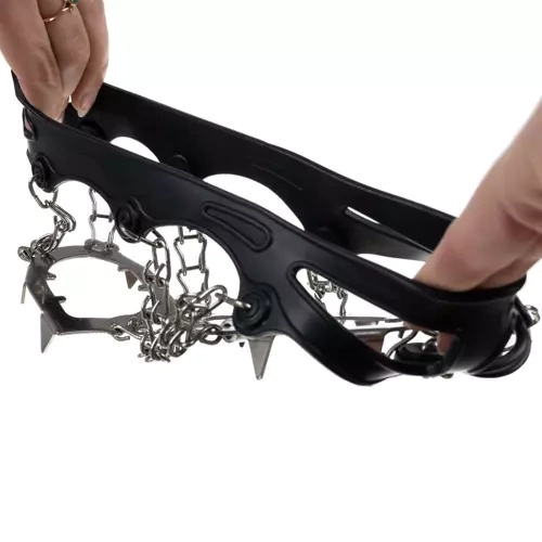 NERJAVEČE VERIGE IN OJAČANA PETNA KAPICA– izdelano iz nerjavnega jekla. Odporne so na rjo in korozijo. Dovolj je, da raztegnete elastičen rob in ga namestite na podplat čevlja. Naširočajičevljev ne poškodujejo , saj se popolno prilegajo obutvi, inojačane petne blazinice zagotavljajo stabilnost predvsem pri spustu.