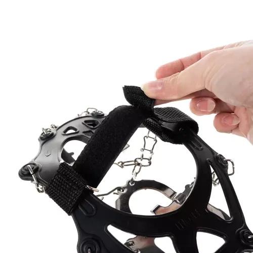 NERJAVEČE VERIŽICE IN OJAČAN PETNI KAP– izdelano iz nerjavnega jekla. Odporne so proti rji in koroziji. Dovolj je, da raztegnete elastični rob in ga namestite na podplat čevlja. Naširočajičevljev ne poškodujejo , saj se popolnoma prilegajo obutvi, inojačane petne blazinice zagotavljajo stabilnost predvsem pri spustu.