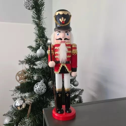 BOŽIČNA DEKORACIJA – Leseno figurico lahko postavite pod božično drevo, k kaminu, na komodo ali na pisalno mizo. Na mizi med božičnimi jedmi bo videti odlično. V kombinaciji z drugimi božičnimi okraski bo doma ustvarila nepozabno, prijetno vzdušje. Leseni krušitelj orehov je ena najbolj priljubljenih prazničnih dekoracij.