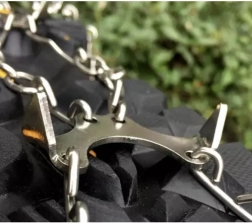 NERJAVNE VERIGE – izdelane iz jekla. Odporne so proti rji in koroziji. Dovolj je, da raztegnete elastični rob in jih namestite na podplat čevlja. Naše derezene poškodujejo obutve, saj se popolno prilegajo čevlju.