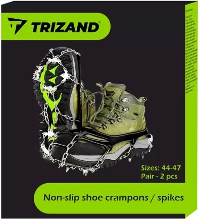 Zanesljivi protizdrsni nastavki TRIZAND v velikosti XL (44–47) zagotavljajo varen korak na snegu in ledu. Zahvaljujoč jeklenim konicam in močnim verižicam ponujajo odličen oprijem, stabilnost in varnost pri zimskih turah in hoji po mestu. Elastični TPE nastavek se hitro namesti, čvrsto drži na obutvi in ne poškoduje čevljev. Priloženo je praktično etui na zadrgo za enostavno prenašanje.