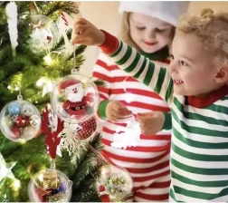 Te prozorne krogle se zlahka odprejo na dve polovici, zato jih lahko napolnite z lastnimi dekoracijami – od peres in trakov do sladkarij. Zaradi prozorne površine jih je mogoče barvati znotraj in zunaj ter kombinirati s tehnikami, kot sta decoupage ali home decor. Tako ustvarite edinstvene okraske, ki poudarijo praznično vzdušje božiča.