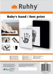 Ohranite čarobne spomine na prve mesece otrokovega življenja z neumazanim blazinico s črnilom tipa clean-touch. Koža se ne dotika črnila – ročica ali nožica se prisloni na blazinico z zgornje strani, odtis pa se prenese na pripravljeno belo kartico. Rezultat so natančni, kontrastni in obstojni odtisi, primerni za okvir, album ali kot darilo.