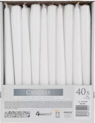 Sveče so izdelane iz kakovostne parafinske zmesi, ki zagotavlja stabilen plamen in gorenje do 7 ur. Idealne so za poroke, krste, pogostitve, cerkvene obrede in domačo uporabo – v praktičnem pakiranju 40 kosov pa zlahka pripravite enotno dekoracijo.