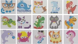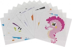 Dve prozorni povezljivi kvadratni podlogi in 15 živalskih motivov pomagajo otrokom natančno razporediti perlice in obvladati tudi večje slike.