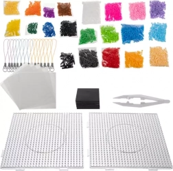 Ta bogat ustvarjalni set prinaša vse, kar potrebujete za izdelavo pixel-art dekoracij iz likalnih perlic. V pakiranju najdete 6500 perlic v pisani paleti 20 odtenkov, 2 prozorni povezljivi kvadratni podlogi, 15 predlog z živalskimi motivi ter praktične dodatke za izdelavo magnetov in obeskov. Zahvaljujoč likalnim papirjem in pinceti otroci ustvarjajo preprosto in varno pod nadzorom odraslih.