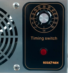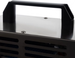 Uporaba je preprosta: mehanski časovnik 1–60 minut omogoča nastavitev dolžine cikla, po preteku pa se naprava samodejno izklopi. Kompaktna kovinska izvedba, zmogljiv ventilator (do 2800 rpm, 45 CFM) in praktičen ročaj olajšujejo prenašanje in uporabo v različnih prostorih.