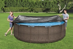 Kakovosten pokrov za bazen je osnova brezskrbne kopalne sezone. Ta prekrivna ponjava BESTWAY se popolnoma prilega okroglim bazenom 366 cm in učinkovito preprečuje vdor nečistoč. Odtočne odprtine preprečujejo nabiranje deževnice, zato se ponjava ne preobremeni in ostane stabilna tudi v neugodnem vremenu.