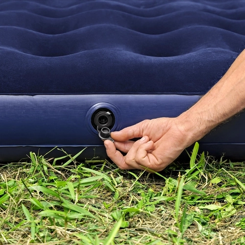 Vgrajeni ventil za hitro napihovanje in izpihovanje skrajša pripravo na nekaj minut. Po izpustu zraka se vzmetnica zlahka zloži v kompaktne mere za varčno shranjevanje in prenos. V paketu je priložen tudi popravni obliž za primer manjših poškodb.