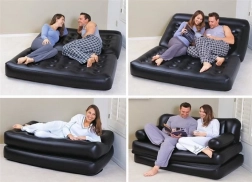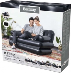 Napihljiva kavčna postelja 5v1 združuje pametno zasnovo z največjo vsestranskostjo. Zahvaljujoč tehnologiji Coil‑Beam je v notranjosti stabilna in nudi prijetno oporo telesu pri sedenju in spanju. V nekaj sekundah jo spremenite v visok kavč, raztegljiv kavč, dvojno ležišče, visoko enojno ležišče ali udoben ležalnik.
