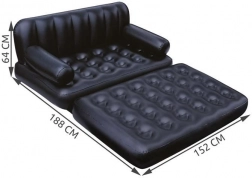 Odporen PVC z vodoodporno površino je enostaven za vzdrževanje – dovolj je obris z vlažno krpo. Naslonjalo in nasloni za roke povečajo udobje pri sproščanju, branju in gledanju TV. Dvosmerni ventil omogoča hitro napihovanje in izpust zraka, kompaktna embalaža pa prihrani prostor pri shranjevanju in prevozu.