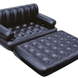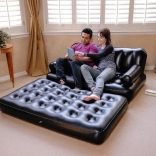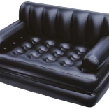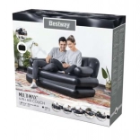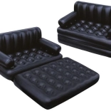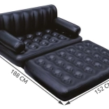 Praktična napihljiva kavčna postelja 5v1 znamke BESTWAY se v hipu spremeni iz stabilnega sedeža v udobno ležišče, ležalnik ali visok enojni oziroma dvojni zračni ležalnik. Zahvaljujoč odpornemu PVC, udobnemu naslonjalu in naslonom za roke je odlična za stanovanje, vikend ali kamp. Je vodoodporna, enostavna za čiščenje in jo zaradi hitrega dvosmernega ventila brez truda napihnete ali izpustite zrak.