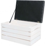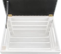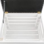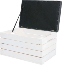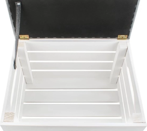 Dvižni pokrov na tečajih s trakom omogoča dostop do velikega shranjevalnega prostora za odeje, čevlje ali igrače in pomaga ohranjati dom brez nereda.