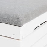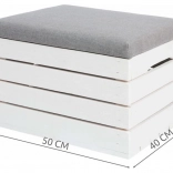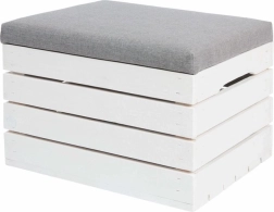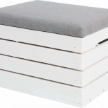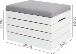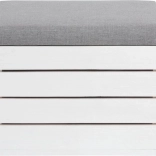 Odkrijte vsestranski puf tabure s shranjevalnim prostorom, ki prihrani prostor in ohranja dom urejen. Dvižni pokrov s sediščem omogoča hiter dostop do shranjenih stvari, medtem ko nevtralna kombinacija belega lesa in sivega oblazinjenja pristaja tako modernim kot klasičnim interierjem.