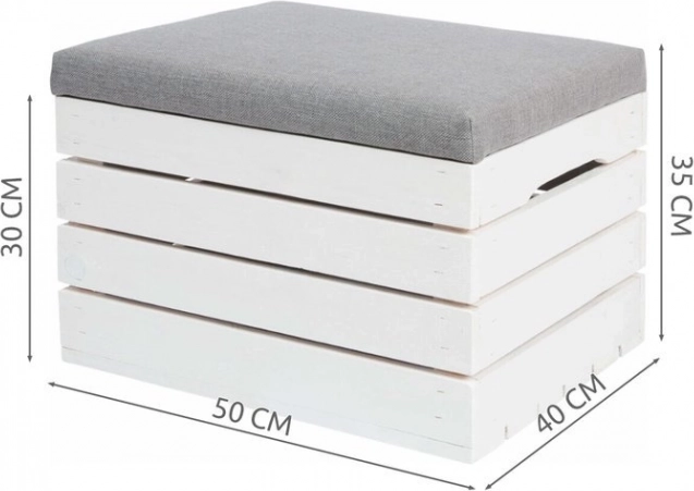 Robustna izvedba iz sušenega in skobljanega smrekovega lesa s širokimi letvicami (do 13 cm) zagotavlja stabilnost in dolgo življenjsko dobo. Visoko elastična pena T-25 nudi udobno sedenje, ne glede na to, ali puf uporabljate kot klop v predsobi, podnožnik ob sedežni garnituri ali praktično odlagalno mizico na balkonu.