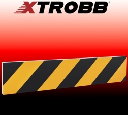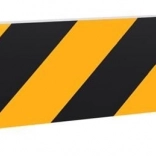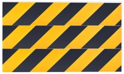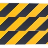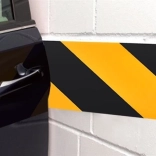 Rumeno‑črne diagonalne črte delujejo kot optično opozorilo in olajšajo oceno razdalje od stene.