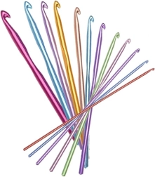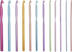 Set vključuje 12 kovinskih kvačk v različnih barvah, ki prinašajo udobje in veselje pri vsakem kvačkanju.