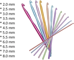 Set 12 kovinskih kvačk ponuja širok obseg velikosti od 2,0 mm do 8,0 mm, popoln za različne projekte. Kvačke imajo ergonomski dizajn s ploščato vložkom in globokimi kvačkami, ki zagotavljajo, da se preja ne bo drsela in se učinkovito ujame.