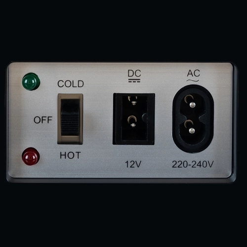 - Hladi za 18–22 °C pod temperaturo okolice, greje na 55–65 °C (termostat).