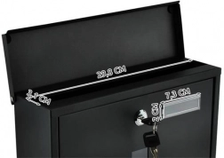 Zanesljiv poštni nabiralnik za hišo ali vikend. Pokrit rež ščiti korespondenco pred dežjem in vlago, hkrati pa brez težav sprejme tudi pošiljke formata A4. Zaklepna sprednja vratca in dva priložena ključa poskrbita za zasebnost in varnost.