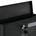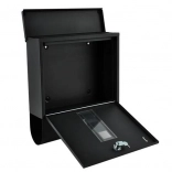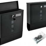 Eleganten črn poštni nabiralnik iz trpežne galvanizirane kovine zagotavlja varno dostavo vaše pošte. Ima pokrit rež za format A4, zaklepna vratca z 2 ključi in praktično držalo za časopise in letake. Robusten dizajn z zaščito pred vremenskimi vplivi in prezračevalnimi odprtinami ohranja pošiljke suhe, montaža pa je enostavna zahvaljujoč priloženi opremi.