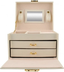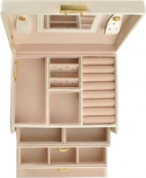 Različne velikosti razdelkov, valji za prstane in dva predala poskrbijo, da je vse na svojem mestu – od uhanov do ur.