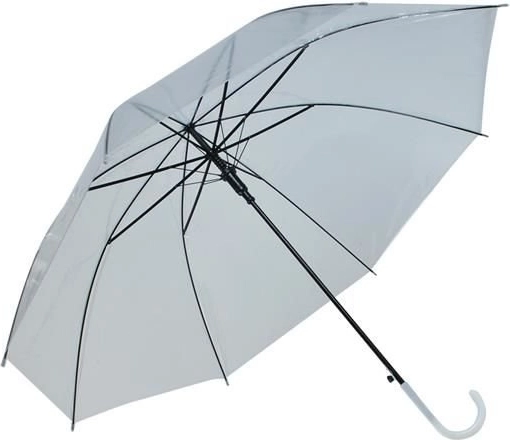 Prozorno platno iz PVC omogoča varno spremljanje poti tudi ob močnejšem dežju, ko je treba dežnik držati pod kotom. Dežnik je hkrati stilski dodatek k elegantnim opravám, vključno s poročnimi in svečanimi oblekami.