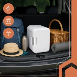 Ta prenosni hladilnik s prostornino 4 litre je odličen spremljevalec na izlete, piknike in dolge vožnje z avtom. Zahvaljujoč načinu hlajenja in gretja ohranja pijače in prigrizke poleti osvežujoče, pozimi pa prijetno tople. V notranjost se prilegajo pločevinke ali steklenice do višine 19 cm, odstranljiva polica in žep v vratih olajšata organizacijo.