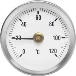 Bimetalni termometer za cevovode je idealna rešitev za merjenje temperature tekočin in plinov. Visoko odporen zaradi ohišja iz nerjavnega jekla nudi zanesljivost tudi v zahtevnih pogojih. Njegova natančna lestvica v °C omogoča podroben nadzor temperature, kar je nujno za učinkovito upravljanje temperaturnih režimov v ogrevalnih sistemih ali cevovodih.