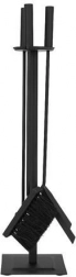 Eleganten komplet kaminskega orodja 4v1 za preprosto upravljanje kamina, peči, žara in kurišča. Vsebuje pogrebalo, lopatko, ščetko in stabilno stojalo z nedrsečimi nogicami. Odporna izdelava iz nerjavnega jekla z mat črnim premazom skrije drobne praske in nečistoče ter prostoru doda čist, sodoben videz.