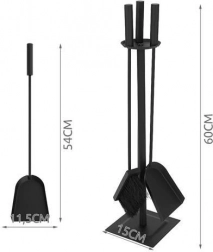 Pogrebalo, lopatka, ščetka in stojalo pokrijejo vse potrebe pri oskrbi kurišča – od razporejanja goriva do temeljitega čiščenja pepela.