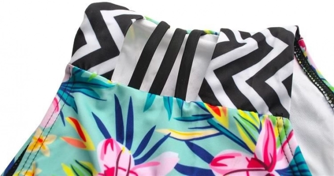 Mešanica 82 % poliestra in 18 % elastana je lahka, hitro sušeča, raztegljiva in odporna na pot ter sredstva za sončenje.