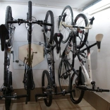 Nosilec za kolo je zasnovan tako, da kolesa lahko visijo vertikalno, s čimer se prihrani talni prostor in ohrani urejen prostor.