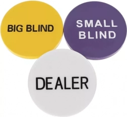 Žetoni DEALER, SMALL BLIND in BIG BLIND zagotavljajo pregledne kroge in nemoten potek vsake partije.