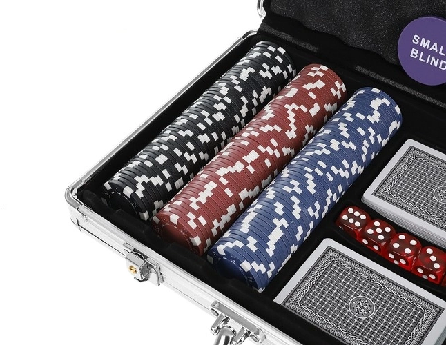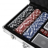 - 300 žetonov s kovinskim jedrom za realističen občutek igre