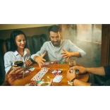- Popolna oprema: 2 kompleta kart, 5 kock, žetoni za vloge